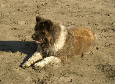 | A DAY AT THE BEACH WITH A LONG HAIRED AKITA. THAT GIVES A WHOLE NEW MEANING TO THE SAYING "I HAVE SAND IN MY SHORTS" |