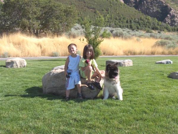 | BELOW Meet "Baldwin" He is pictured below with his two best friends Miya 6yrs & William 3yrs. A huge Thank You to the Wu family for loving our pup & sharing this beautiful picture with us !!!! Baldwin is between 4 to 5 months |