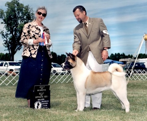 ~* Call Name; ABBEY ~* Bred by; Ann D. Johnson Day Dream Akitas ~* Owner; Arland & Mary Draper & their grandaughter Jamie Binder DemBe Akitas ~* OFA hips; GOOD ~* OFA elbows; NORMAL ~* OFA thyroid; NORMAL ~* CERF; CLEAR ~* DOB; 01-16-2003 ~* Dam; CH. Sho n Tel's Mighty Makida ROM ~* Sire; CH. Huntmere Legacy's Temper Tantrum ~* Click here to view: Pedigree |