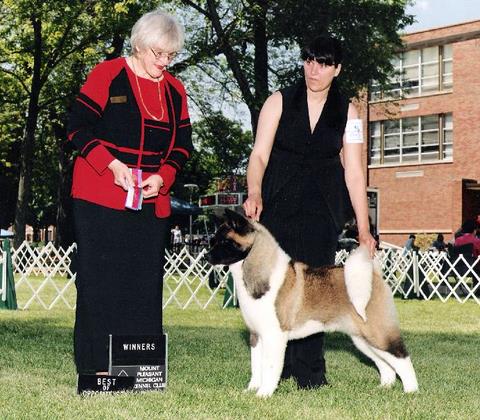~* Call Name; MACEY ~* Owner & Breeder; Ann Dickens Johnson Day Dream Akitas ~* OFA hips; GOOD ~* OFA elbows; NORMAL ~* OFA thyroid; NORMAL ~* CERF; CLEAR ~* DOB; 11-20-2003 ~* Dam; CH Sho N Tel's Amazing Mazy Yea ROM ~* Sire; Am/Cn CH Biss Excaliburs Atomic Playboy ROM ~* Click here to view: Pedigree |